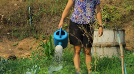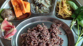 We have been planting many kinds of vegetables and fruit trees. The aim is to produce enough for our own daily nourishment, and, as our harvest allows, share with the people in the community. We used to sell our organic products in Bangkok, but now we are exploring the local market. So much processed food from the city is bought and consumed in the village, and apparently health problems have increased. We would like to contribute to the better health of the people in the community, and therefore, together with other organic farmers around, we are seeking a venue to sell our products nearby.